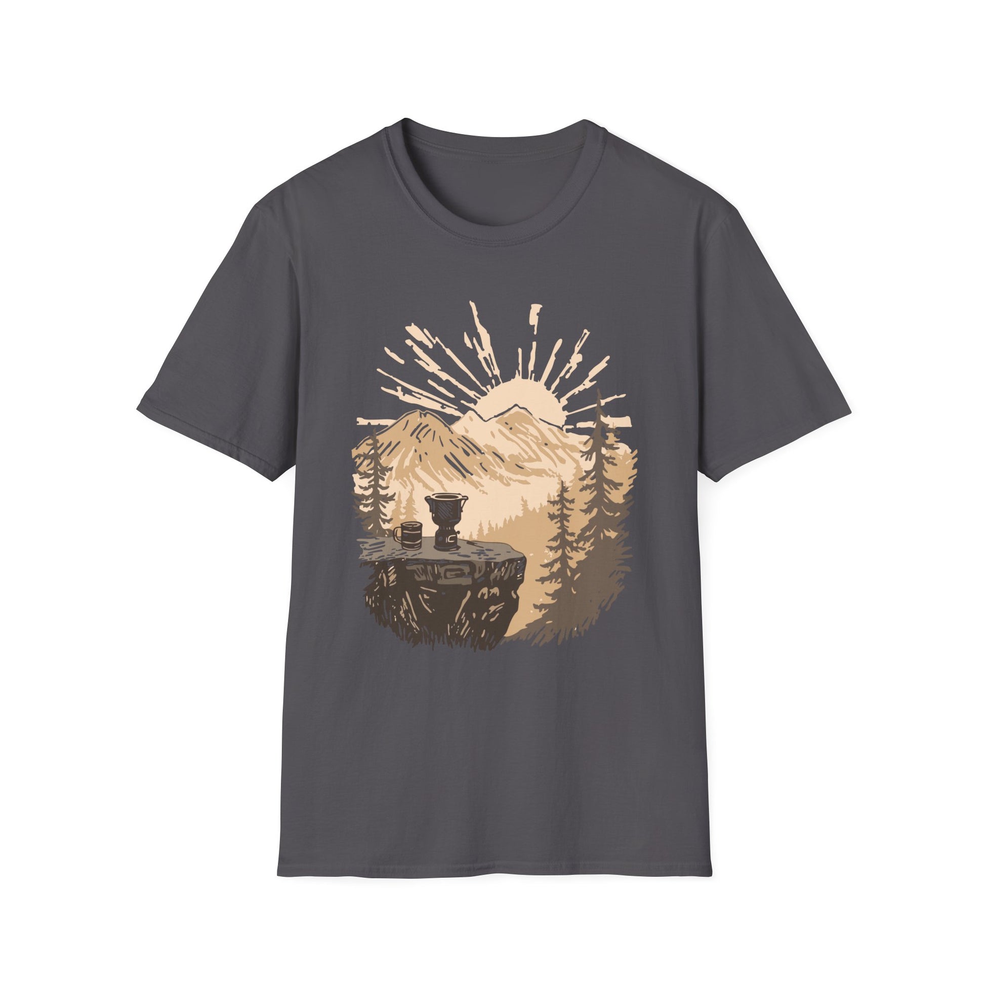 Morning Brew with a View – Sunrise Mountain Coffee T-Shirt